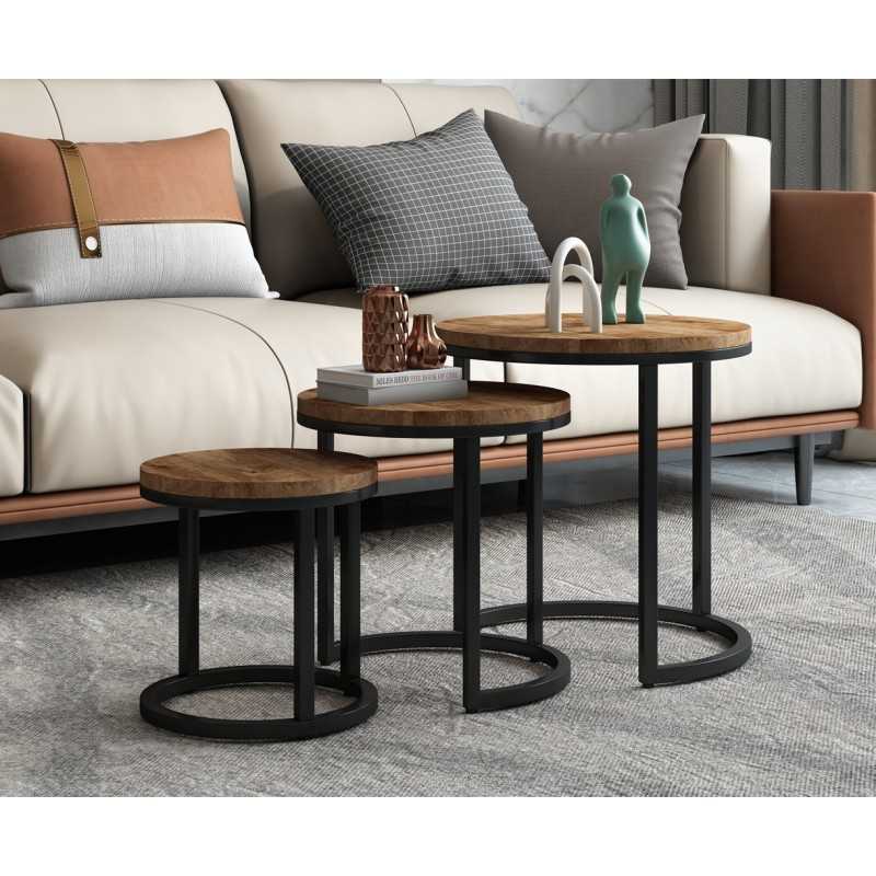 Table d'appoint 'Plano' set de 3 Bois de Manguier